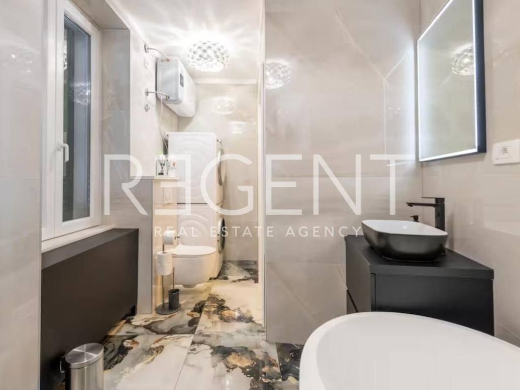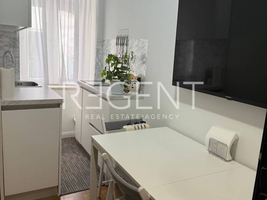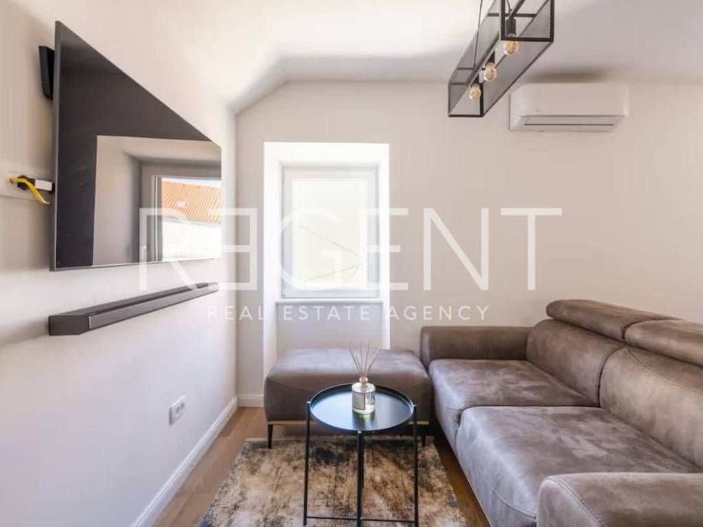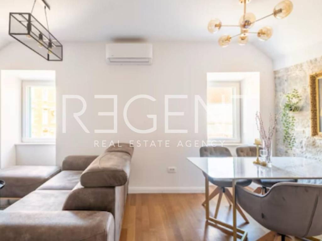 В самом сердце исторического центра Сплита находится квартира на третьем этаже аутентичного каменного здания. Это тщательно отремонтированное пространство, сочетающее в себе средиземноморское очарование и современный комфорт, в нескольких минутах ходьбы от дворца Диоклетиана, ресторанов и культурных объектов. Общая площадь составляет 88 м² и организована как два отдельных жилых блока с доступом через частный коридор, принадлежащий квартире. Большая секция (около 62 м²) включает прихожую, гостиную со столовой и кухней, две спальни (одна на верхнем этаже) и просторную ванную комнату с душем и ванной, что является отличным решением для семейного или длительного проживания. Вторая секция - продуманная студия (около 20 м²) с полностью оборудованной кухней (посудомоечная машина, духовка, холодильник, плита), отдельной гостиной и спальной зоной с раздвижной стеной, обеспечивающей приватность и много света, а также ванной комнатой с душевой кабиной. Квартира расположена на тихом третьем этаже, что обеспечивает уединение и вид на старый город. Полный ремонт был произведен в 2022 году: заменены коммуникации, установлены новые полы и столярные изделия, а также современные кухонные решения с акцентом на эстетику и функциональность. Планировка обеспечивает гибкость - возможность проживания в большей секции с параллельным доходом от сдачи студии в аренду или использования студии для гостей или рабочего кабинета. Для получения дополнительной информации, а также для организации просмотра, пожалуйста, свяжитесь с нами!