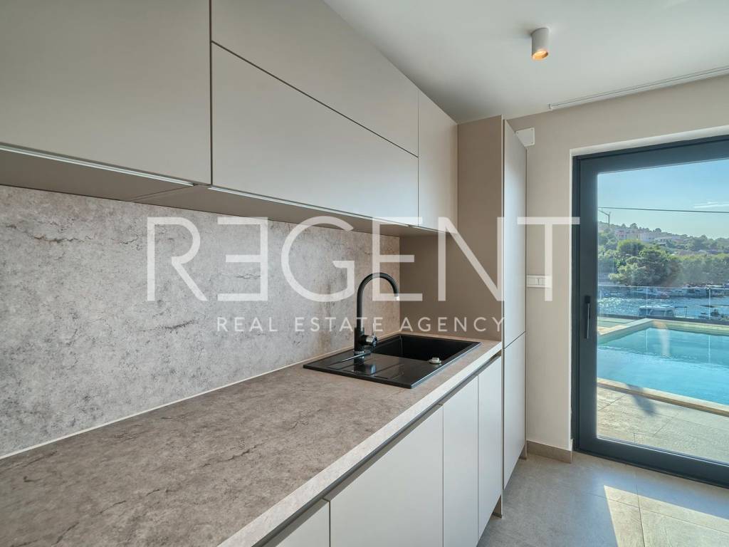 Роскошная вилла, расположенная на первой линии моря в Ражне, в привлекательном месте недалеко от Рогозницы. Вилла спроектирована в современном стиле, занимает три этажа и идеально подходит для семейной жизни, отдыха или инвестиций. Вилла имеет общую чистую площадь 187,27 м² и состоит из четырех спален и пяти ванных комнат. На первом этаже находится кладовая, помещение для фитнеса или оздоровительного центра и дополнительное помещение, подходящее для таверны или общения, с выходом на крытую террасу площадью 19,23 м². Первый этаж включает в себя открытую гостиную с кухней и столовой, гостевой туалет и спальню с собственной ванной комнатой, в то время как просторный балкон площадью 27,03 м² открывает прекрасный вид на море. На втором этаже расположены три спальни, каждая с собственной ванной комнатой, гардеробная и два балкона, из которых больший имеет площадь 18,71 м² и предлагает беспрепятственный вид на Адриатическое море. Вилла оснащена качественными материалами, современными установками, полами с подогревом и кондиционированием воздуха, и будет полностью меблирована. Недвижимость расположена в тихом и привлекательном месте в Ражне, в непосредственной близости от Рогозницы и всех важных объектов. Марина, рестораны, магазины и другие удобства находятся всего в нескольких минутах езды. Море и пляж находятся прямо перед виллой, что дополнительно подчеркивает эксклюзивность расположения. Вилла находится в стадии строительства, завершение работ запланировано на май 2025 года. Заселение возможно сразу после завершения и получения разрешения на ввод в эксплуатацию. Вилла включает в себя два парковочных места, бассейн, барбекю и гараж. Оплата возможна поэтапно, с гибкими условиями. Для получения дополнительной информации или организации просмотра, пожалуйста, свяжитесь с нами.