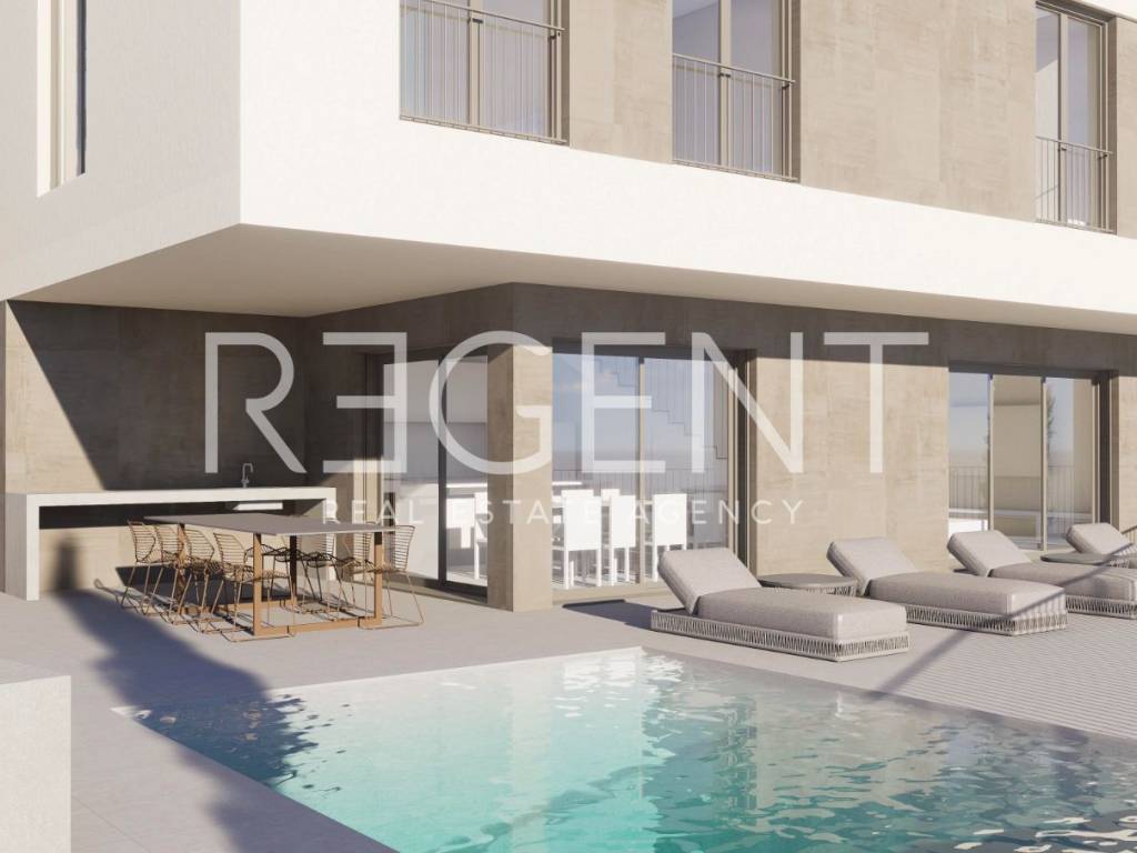 Продается земельный участок площадью 462,94 м² в Солине с разработанным концептуальным проектом для семейного жилого дома с подвалом, цокольным этажом и этажом. Проект предусматривает современную виллу с бассейном и сопутствующими удобствами, расположенную в тихом месте с отличной транспортной доступностью. Согласно проекту, дом общей брутто-площадью 209,48 м² распределен на три этажа. В подвале предусмотрены винный погреб, сауна, машинное отделение и подсобные помещения. Цокольный этаж включает просторную дневную зону с кухней и столовой, выход на террасу и сад с бассейном, а также дополнительные удобства, такие как подсобное помещение и ванная комната. На первом этаже расположены три спальни, включая главную спальню с собственной ванной комнатой. Согласно действующему плану, максимальная разрешенная застройка составляет 138,88 м², а реализованный коэффициент застройки (Kig) - 0,273. На участке обязательно обеспечить не менее 25% зеленой зоны, а расстояния от границ и дорог согласованы с территориальным планом. Расположение земельного участка обеспечивает тихую обстановку в непосредственной близости от всех удобств, необходимых для комфортной жизни - школы, магазины и доступ к основным дорогам. Идеальный выбор для семьи, ищущей современный дом, или для инвесторов, желающих надежный проект, готовый к реализации. Для получения дополнительной информации, а также для организации осмотра, пожалуйста, свяжитесь с нами!