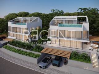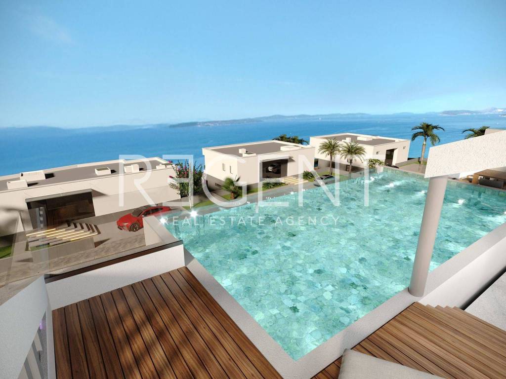 Недалеко от Сплита, в одном из самых красивых мест на хорватском побережье, в Подстране, в элитном поселке, находящемся на текущей стадии строительства, расположилась роскошная вилла, всего в 400 м от моря. Эта вилла общей жилой площадью 579 м2 захватывает дух своей изысканностью и элегантностью интерьера и экстерьера. Вилла построена на трех этажах, состоящих из подвала, первого этажа и этажа. Вход на виллу с северной стороны на уровне 1 этажа, а связь между этажами осуществляется двухмаршевой лестницей и лифтом. Участок вокруг здания оформлен каскадным способом. В подвале находятся лестница, коридор, машинное отделение, прачечная, лифт, туалет, душ, подсобное помещение, атриум, пейзажный бассейн, машинное отделение бассейна и компенсационный бассейн. Первый этаж состоит из лестницы, лифта, коридора, гардероба, туалета, кладовой, ванной комнаты, гостиной, столовой, кухни, а также имеет выход на крытую и открытую террасы с барбекю. Двор виллы огорожен высоким бетонным забором, чтобы достичь самой интимности виллы и сада. Обильные стеклянные поверхности позволяют объединить жилое пространство с наружным. Первый этаж состоит из лестницы, лифта, коридора, трех спален и трех прилегающих ванных комнат, а также выхода на крытую террасу с панорамным видом. Мы предлагаем вам возможность спроектировать свой собственный дом с помощью нашего внутреннего дизайнера. Дизайны для виллы уже подготовлены, и вам доступен широкий спектр опций. Фундаменты: Объект будет основан на железобетонной плите толщиной 35 см. + слои. Бассейн и машинное отделение также будут основаны на железобетонной плите толщиной 25 см. Подвальные стены: Все несущие стены, контактирующие с землей, выполнены из железобетона с завершенной поверхностью гидроизоляции и теплоизоляции для защиты от воздействия внешних воздействий на сам объект. Крыша: Плоская непроходная крыша с завершающим покрытием: гравий из-за воздействия атмосферных явлений. Все наружные блоки кондиционирования расположены на крыше. Солнечные панели также находятся на крыше. Железобетонные компоненты на полах (гостиная и общие зоны) Железобетонные элементы на полах, а также перегородки квартир или подпольные потолки изготавливаются в соответствии со статическими требованиями. Подпольные потолки изготавливаются готовыми элементами потолков или бетоном на месте. Стяжка (подпольная конструкция): Этажная конструкция выполняется в соответствии с энергетическими сертификатами. Внутри самой стяжки находится водяной подогрев пола по всему объекту Лифт: Будет выполнен таким образом, чтобы две видимые стороны лифта были в стекле. Парковка: Вилла содержит 3 внешние крытые парковки. Вокруг самого парковочного места оставлено достаточно места для маневра поворота. По желанию покупателя оставляется подключение для зарядки электрических автомобилей. Фасад: Высококачественная система изоляции (демит, этикс система), которая подразумевает отличные достижения сертификата дома. Сантехника: Вся сантехника, то есть оборудование, будет выполнена от марки GEBERIT. Переливной бассейн: Просторный бассейн с 37.62 м2, который через свой стеклянный перелив предоставляет вид на далматинские острова. Цель переливного бассейна состоит в том, чтобы вода из бассейна сливалась по виду из бассейна с морем, что действительно пред