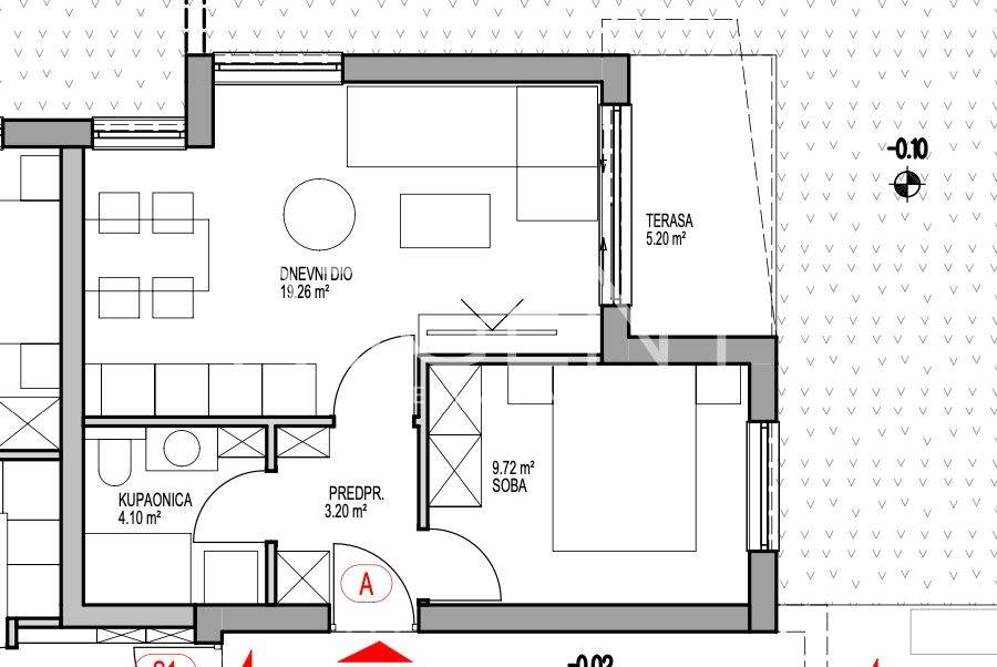 Квартира расположена на первом этаже проекта Strožanac Residence, современной новостройки в тихой жилой части Строжанца. Квартира состоит из: прихожей 4,37 м², гостиной 27,18 м², коридора 3,47 м², ванной комнаты 4,63 м², спальни 12,52 м² и лоджии 14,44 м² (расчетно 3,61 м²), что в общей сложности составляет 55,78 м² полезной площади. Квартира разработана для максимального использования пространства, с использованием современных строительных стандартов и качественных материалов, обеспечивающих долговечность и комфорт. Гаражное парковочное место стоит 25 000 евро. Планируемое завершение работ запланировано на конец лета 2027 года. Strožanac представляет собой идеальное место для комфортной и качественной жизни, где сочетаются тихая жилая среда и близость к морю. Район отлично связан со Сплитом и основными дорогами, что обеспечивает легкий доступ к деловым и культурным объектам города. В то же время, в непосредственной близости находятся школы, магазины и зоны отдыха, что обеспечивает все предпосылки для функциональной и современной жизни. Для получения дополнительной информации, а также для организации просмотра, пожалуйста, свяжитесь с нами!