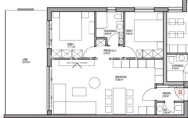 Квартира расположена на первом этаже проекта Strožanac Residence, современной новостройки в тихой жилой части Строжанца. Квартира состоит из: прихожей 4,37 м², гостиной 27,18 м², коридора 3,47 м², ванной комнаты 4,63 м², спальни 12,52 м² и лоджии 14,44 м² (расчетно 3,61 м²), что в общей сложности составляет 55,78 м² полезной площади. Квартира разработана для максимального использования пространства, с использованием современных строительных стандартов и качественных материалов, обеспечивающих долговечность и комфорт. Гаражное парковочное место стоит 25 000 евро. Планируемое завершение работ запланировано на конец лета 2027 года. Strožanac представляет собой идеальное место для комфортной и качественной жизни, где сочетаются тихая жилая среда и близость к морю. Район отлично связан со Сплитом и основными дорогами, что обеспечивает легкий доступ к деловым и культурным объектам города. В то же время, в непосредственной близости находятся школы, магазины и зоны отдыха, что обеспечивает все предпосылки для функциональной и современной жизни. Для получения дополнительной информации, а также для организации просмотра, пожалуйста, свяжитесь с нами!