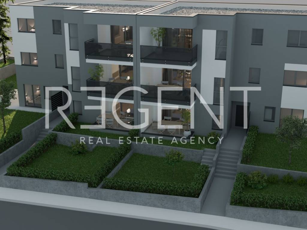 Квартира расположена на первом этаже небольшого жилого дома в тихой части Мравинце, в месте с отличным транспортным сообщением со Сплитом и его окрестностями. Состоит из двух спален, ванной комнаты, дополнительного туалета, кладовой и жилой зоны, объединяющей кухню, столовую и гостиную с выходом на крытую террасу и небольшой сад. В цену включено парковочное место в гараже, также возможно приобрести дополнительное место за дополнительную плату. Квартира строится и оборудуется качественными материалами, среди которых выделяются: термоизоляция из минеральной ваты толщиной 10 см, строительство из железобетона, напольные покрытия из керамики больших профилей и современного дизайна, наружные ПВХ окна 6/7 камер с тройным стеклопакетом и электрическими жалюзи, подогрев полов в ванной комнате, первоклассные кондиционеры (два на квартиру с возможностью установки третьего), противовзломные двери и ограждения на балконах из двухслойного тонированного стекла. Планируемое начало строительства - первая половина 2026 года, а заселение - после получения разрешения на ввод в эксплуатацию. Оплата предусмотрена поэтапно: 30 % при подписании предварительного договора, 40 % после завершения бетонной конструкции и 30 % после завершения фасада. По согласованию с покупателем возможна адаптация способа оплаты. Для получения дополнительной информации о самом проекте и цене квартиры, пожалуйста, свяжитесь с нами.