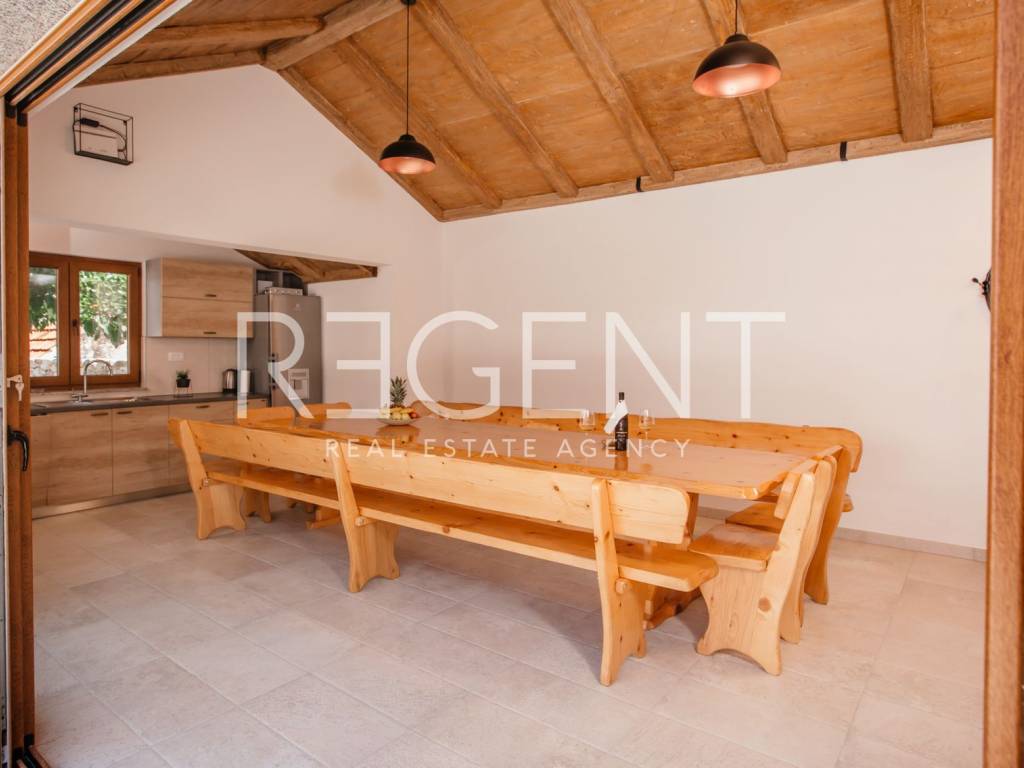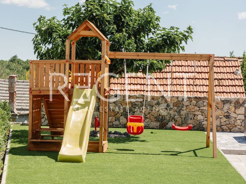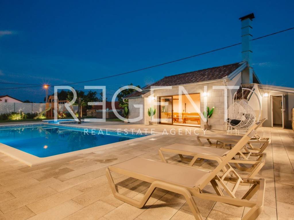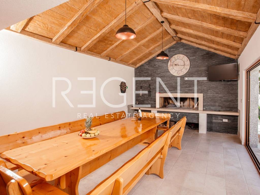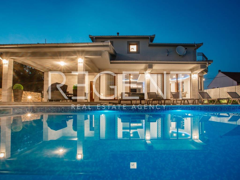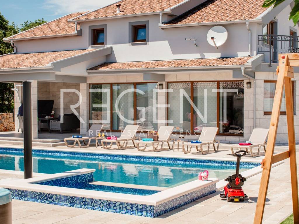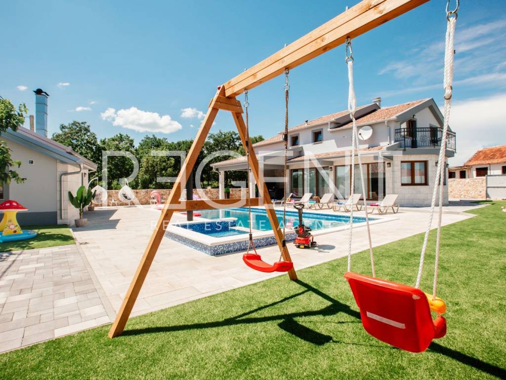 Предлагаем к продаже роскошно оформленный объект недвижимости в самом сердце Имотски. Вилла площадью 277 м2 расположена в тихом месте, идеально подходящем для длительного семейного отдыха и различных торжеств. Идеально подходит для сдачи в аренду туристам и дает возможность продолжить налаженный бизнес.На первом этаже виллы находится гостиная с кухней и столовой, спальня с ванной комнатой, туалет, прачечная, тренажерный зал и выход на просторную террасу с бассейном и большой площадкой для загара. Мансарда состоит из четырех спален с ванными комнатами, коридора и балкона. Двор оборудован большим бассейном с подогревом, джакузи, летней кухней и детской площадкой, а также просторной площадкой для загара, поэтому он идеально подходит для всех групп гостей, потому что каждый обязательно найдет что-то для себя.Вилла красивая и современно оформлена, все комнаты полностью оборудованы.