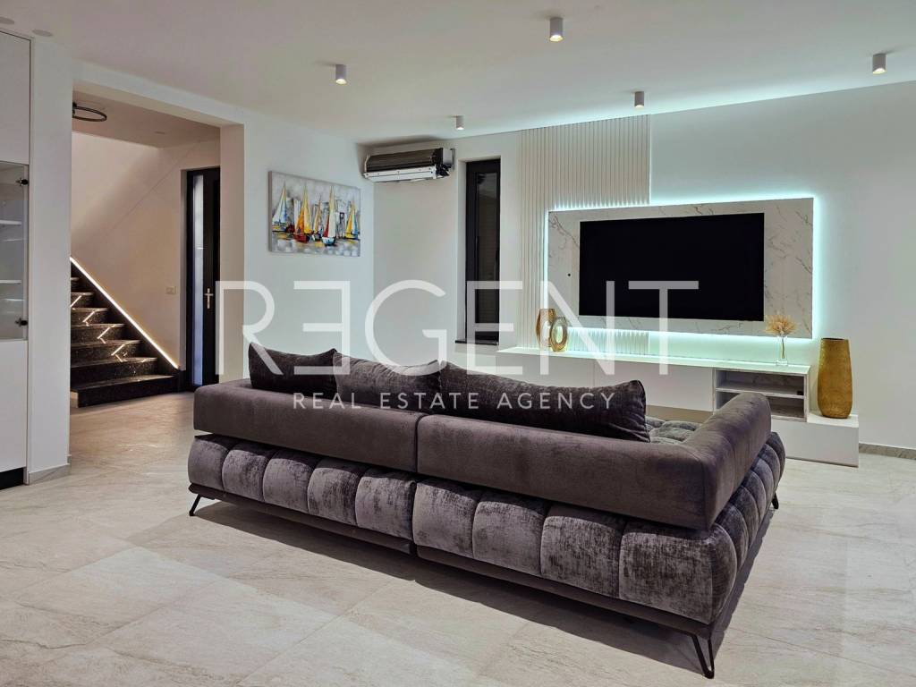 Мы выступаем посредниками в продаже недавно построенной современной виллы, расположенной в тихом районе Сплита, Подстране, идеально подходящей для семейной жизни или в качестве инвестиции для туристической аренды. Этот объект недвижимости расположен на участке площадью 600 м2 и занимает два этажа общей жилой площадью 320 м². Вилла состоит из: Подвальное помещение (99,1 м²): В подвале находится просторный гараж, полностью оборудованная фитнес-студия с сауной и дополнительное помещение, которое можно приспособить для отдыха или других целей. Первый этаж (81,9 м²): На первом этаже находится прихожая, лестница, современная кухня со столовой, просторная гостиная, спальня с ванной комнатой и отдельный туалет. Второй этаж (88,4 м²): На последнем этаже расположены три спальни, каждая с собственной ванной комнатой, что обеспечивает максимальную конфиденциальность и комфорт. Двор и открытое пространство соответствуют высоким стандартам дизайна интерьера виллы. Территория тщательно озеленена средиземноморскими растениями, такими как оливковые деревья и пальмы. Во дворе есть три парковочных места, а центральную часть занимает бассейн с подогревом и кондиционером воды (с функциями нагрева и охлаждения), электролизом (соленая вода) и четырьмя функциями гидромассажа. Недвижимость продается полностью оборудованной и готовой к заселению. Он расположен всего в 300 метрах от моря, что обеспечивает легкий доступ к пляжу. Эта недвижимость является идеальным выбором для тех, кто ищет спокойную обстановку, недалеко от всех удобств, необходимых для комфортной жизни. Учитывая его расположение и оборудование, он подходит как для круглогодичного проживания, так и для инвестиций в туристическую аренду. Для получения дополнительной информации, а также для договоренности об осмотре, не стесняйтесь обращаться к нам!