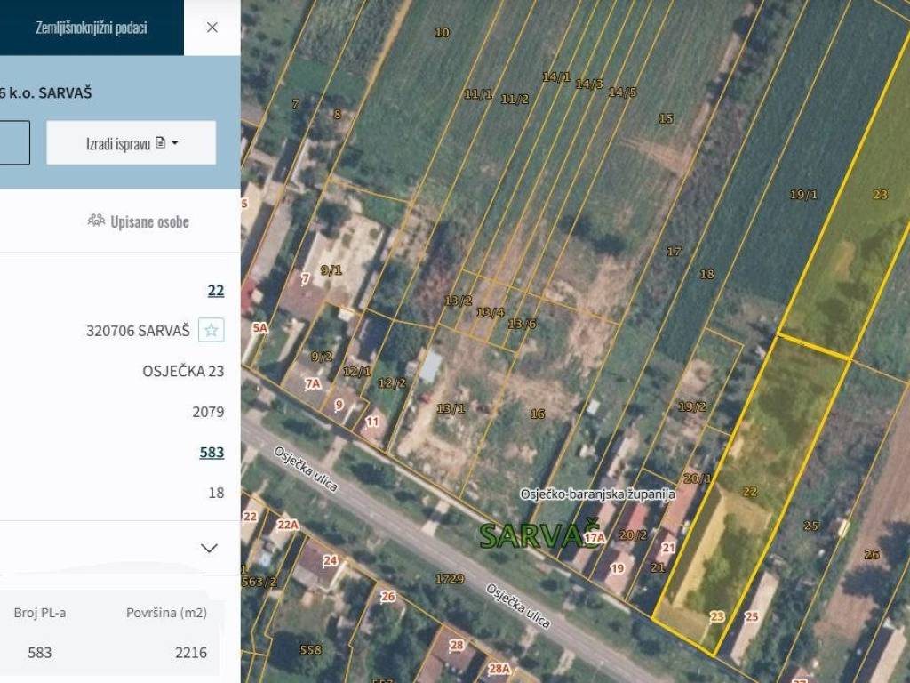 Prodaje se kuća u Sarvašu, Osječka 23 sa velikom okućnicom kčbr 22 i oranicom kčbr 23 ukupne površine cca 4600m2. Mogućnost gradnje na drugoj parceli. Cijena po dogovoru. (Š)