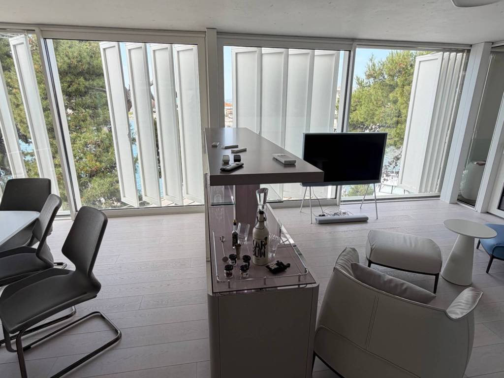 We are selling a newly built, modernly furnished, and fully equipped family house with a yard in the city of Zadar. This luxurious house is located right by the sea, built just 10 meters from the most beautiful and luxurious part of the urban coastline of Zadar, Brodarica on Borik. The goal of the architectural firm was to design a timeless, modern vacation home that would perfectly blend into the existing surroundings. A decisive factor in the design of this architectural masterpiece was the immediate proximity to the sea and the unique atmosphere offered by this location. All rooms, living areas, bathrooms, and terraces are oriented towards the sea or the marina with sea views, and from every room, you can enjoy a view of the sea and Zadar harbor or the most beautiful sunset. The entire house has a movable modular facade, which solves all issues of privacy from neighbors or viewpoints, as well as shading the building. This original solution always ensures the best atmosphere, whether it is related to the view or the light but also the shading of the building. This original solution always ensures the best atmosphere, whether it's about the view or the light, and also changes the appearance of this beautiful house both inside and out.