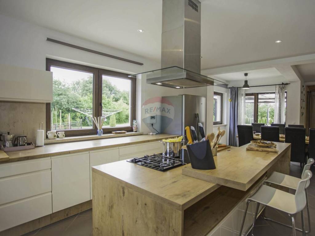 In the basement of 100m2 there is a fireplace, billiards, fitness and bathroom. There is also a garage and workshop.
