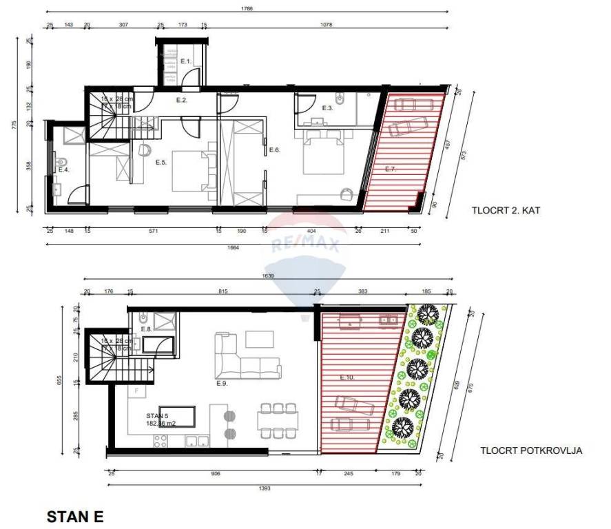 Penthouse E in question is located on the 2nd floor of this modern building and has a total of 152 m2 of usable area across 2 floors.