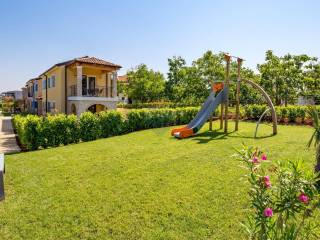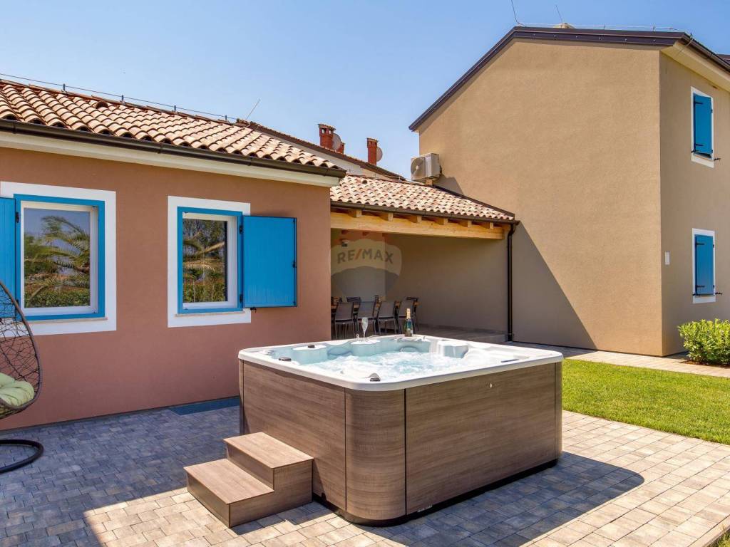In the yard there is a swimming pool with fresh water, a sunbathing area, a jacuzzi, a barbecue and a playground for children.