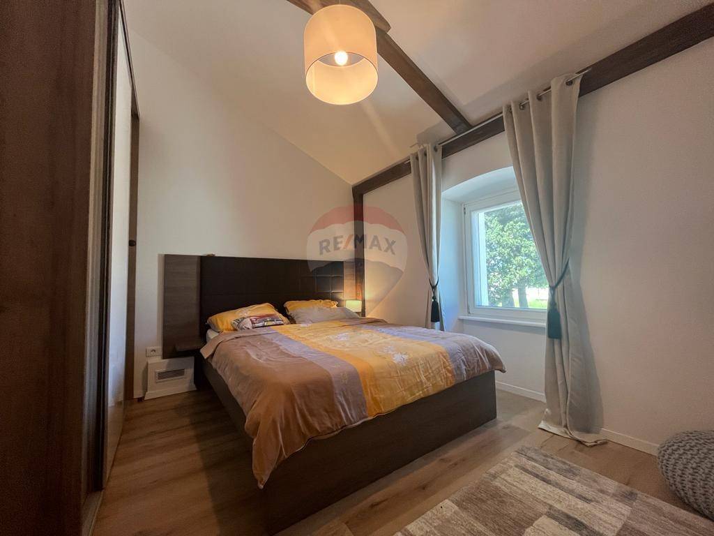 Completely renovated and tastefully decorated, the house on the ground floor has a spacious living room with a fireplace, a toilet, a storage room, a kitchen with a dining room, and there are three bedrooms on the first floor.
