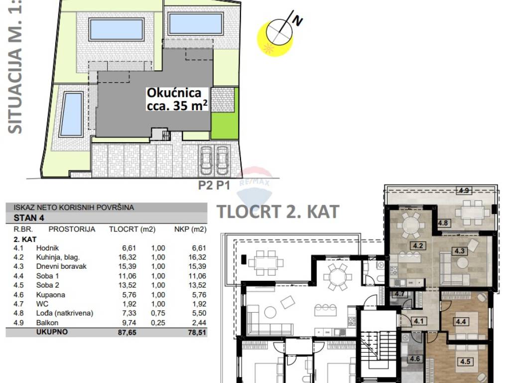 The building consists of 4 apartments, and this apartment is located on the first floor. With a total area of about 115m2, the apartment has two bedrooms, a bathroom, a hallway, a toilet, a kitchen with a dining room and a living room. The apartment has a storage room on the ground floor of about 40m2 with direct access to its own garden.