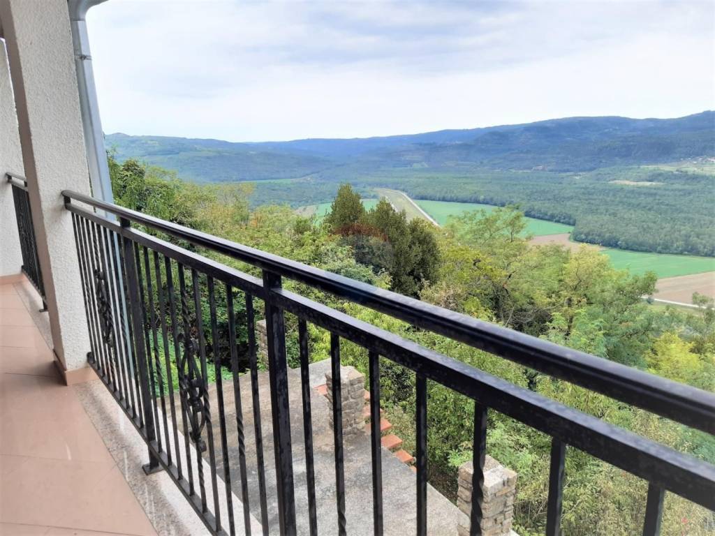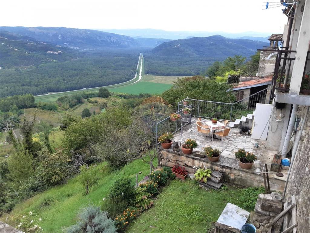 The house has a main entrance on the main street of Motovun. We enter the hallway, then on the left there is a bathroom, then we enter the kitchen and living room from which there is an unobstructed view of the entire Mirna River valley. From the living room there is an exit to a covered terrace. In the hallway, a staircase leads us to a tavern that exudes antiquity and has a beautiful stone vault. From the tavern we exit again to the terrace from which we descend by stairs into our own garden. From the middle floor we go up by stairs to two rooms. Then another floor up to the attic which has a concrete roof and it is possible to arrange the space as desired.