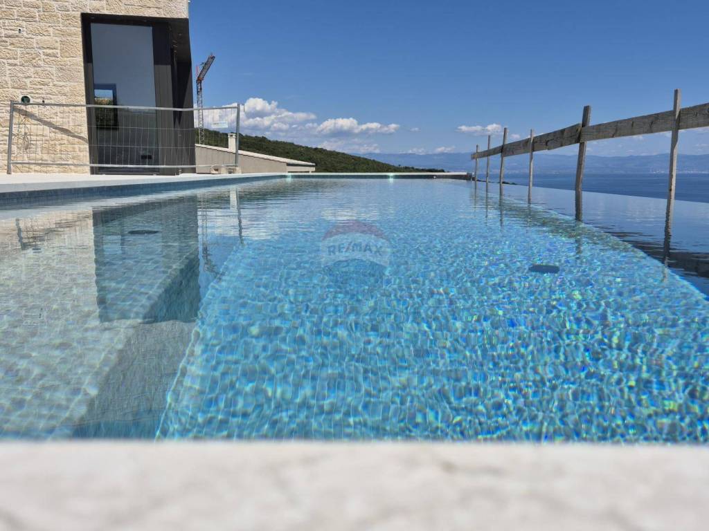 RE/MAX Centar nekretnine offers you this beautiful exclusive villa located in a small idyllic village on a 1,156m2 plot on a hill in the middle of pure nature. This magnificent 382m2 villa radiates irresistible charm, with a breathtaking open view of the sea, the island of Cres, Lošinj and Kvarner. Pure bliss as far as the eye can see. Only a 10-minute walk separates you from the first bay on the sea. In the immediate vicinity there are first-class restaurants and typical traditional taverns. The residence is bathed in sun, peace and nature, therefore it offers incredible hospitality.