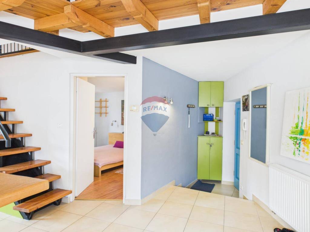 For sale is a two-level apartment located about 500 meters from the beach. It is situated on the first floor and attic of a small residential building.