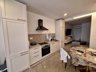 Lovran - We offer a new, modernly furnished apartment consisting of two bedrooms, two bathrooms, a toilet, a living room with a kitchen and a dining room, and a spacious terrace with a panoramic view of the bay. The apartment has an outdoor swimming pool and a part of the garden with a barbecue.