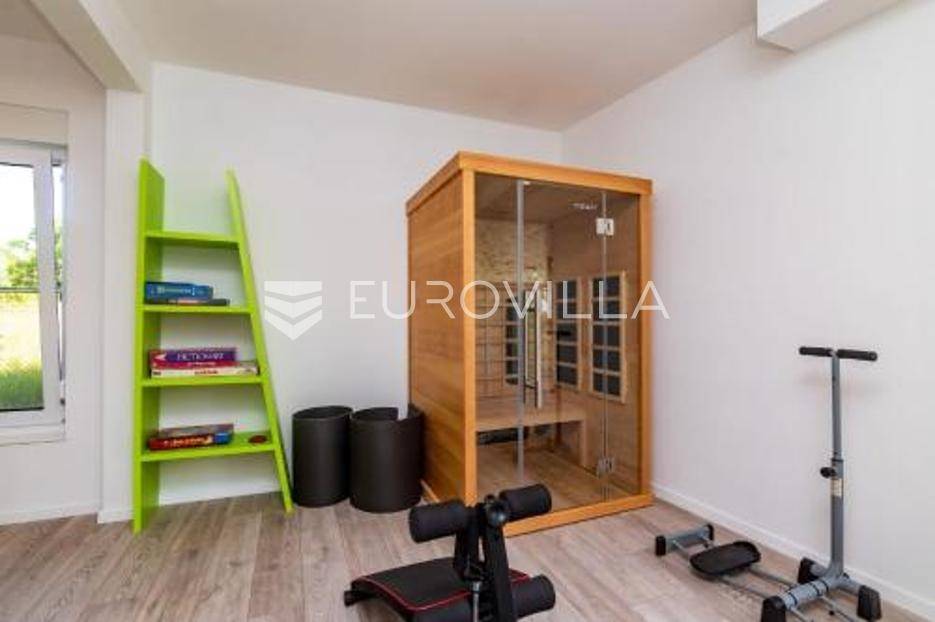 Zadar, Suhovare, moderna vila smještena u mirnom naselju Suhovare, u blizini Poličnika, predstavlja savršenu oazu luksuza i udobnosti.Izgrađena 2020. godine, ova nekretnina se prostire na 134 m2 stambenog prostora, okružena prekrasnim vrtom na zemljištu površine 492 m2.Vila se sastoji od tri prostrane sobe i četiri elegantno uređene kupaonice, pružajući dovoljno prostora za obitelj i goste. Uživajte u prekrasnim trenucima na balkonu ili terasi, opuštajući se uz pogled na okolicu. Bazen pruža osvježenje tijekom vrućih ljetnih dana, dok kamin stvara ugodnu atmosferu u hladnijim mjesecima.Za ljubitelje aktivnog života, vila nudi teretanu/fitness prostor i saunu.Ostava pruža dodatni prostor za pohranu, čineći ovu vilu izuzetno praktičnom.Uređena s pažnjom prema detaljima, ova vila nudi vrhunski životni stil u mirnom i opuštajućem okruženju. Idealna je za one koji traže savršen spoj luksuza, udobnosti i privatnosti u blizini svih potrebnih sadržaja.Za sve ostale informacije stojim Vam na raspolaganju.