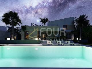 Modern luxury villa with private pool and sea view is for sale, located in an exclusive resort on the island of Krk, just one kilometer from the coast. It is a newly built property scheduled for completion in 2026, carefully designed to offer a perfect blend of comfort, privacy, and high construction standards. The house has a total of 198.67 m2 of living space spread over three floors: basement, ground floor, and first floor.