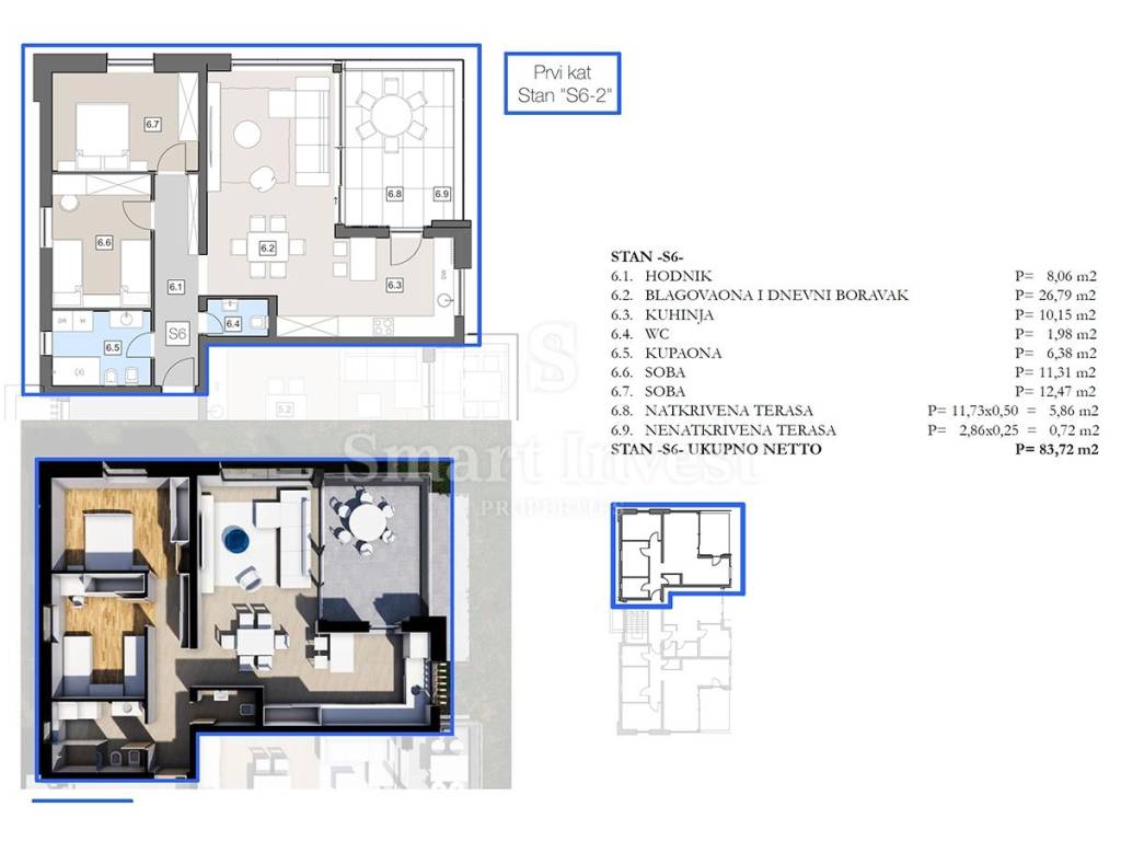 The listed price refers to a completely finished apartment on a turnkey basis, without furniture. The price includes VAT, the buyer is exempt from paying real estate tax. In the case of purchasing from a company registered in Croatia, a full VAT refund is possible after the purchase.