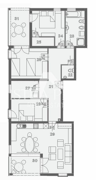 Полностью меблированная квартира в одном из самых престижных районов Пореча. Расположенная всего в 300 метрах от пляжа, в центре города, квартира обеспечивает легкий доступ ко всем удобствам этого прекрасного города.
