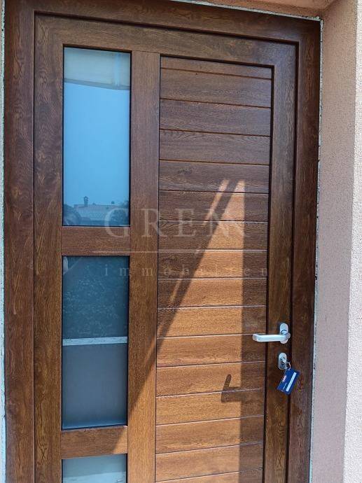 Prodaje se renoviran san u dijelu I kata stambene zgrade , sastoji se od: hodnika, dnevnog boravka, blagavaonice, kuhinje dvije spavaće sobe, kupaonice i zatvorene lođe neto površine 81,62 m2, a kojem posebnom dijelu "D" pripadaju pripadci na I katu: natkrivena terasa oznake "D7" korisne površine 6,36 m2 , vanjsko stubište "S1", i potkrovlje 2 oznake "P8" veličine 80 m2 te okućnica oznake "V.4." tlocrtne površine 225,70 m2.