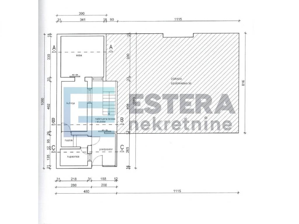 Prodaje se potpuno namješten i useljiv stan u mirnoj Severinskoj ulici, svega 80 m od tramvajske stanice Selska (linije 3, 9 i 12). Stan se prostire na prizemlju i suterenu, ukupne tlocrtne površine 50,39 m2.