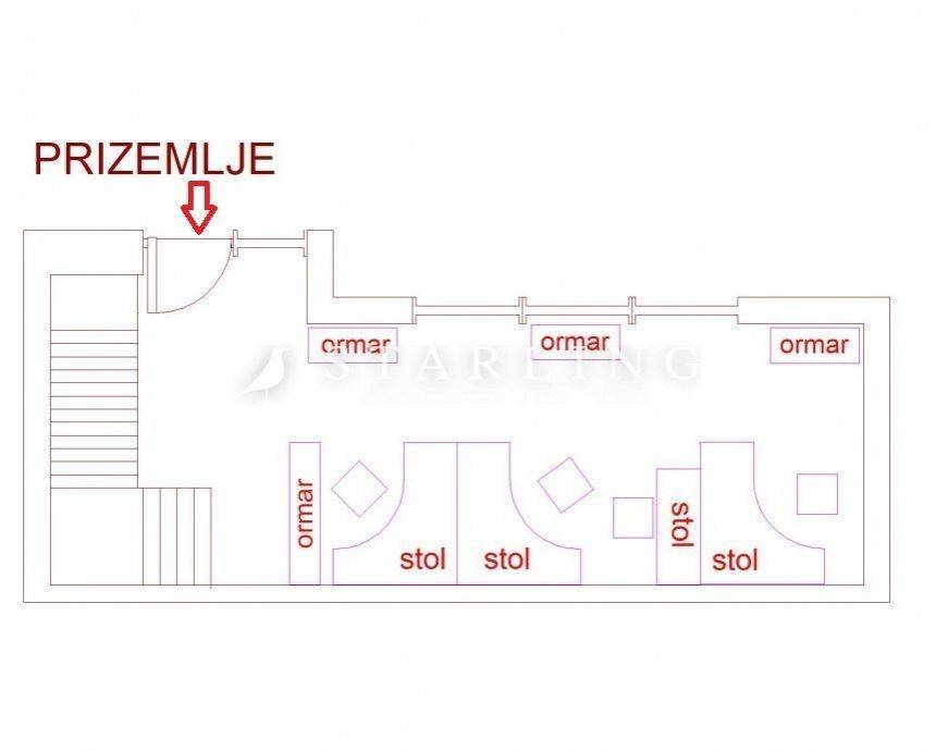 Daje se u zakup poslovni prostor površine 58 m2 u prizemlju i suterenu zgrade bez lifta.