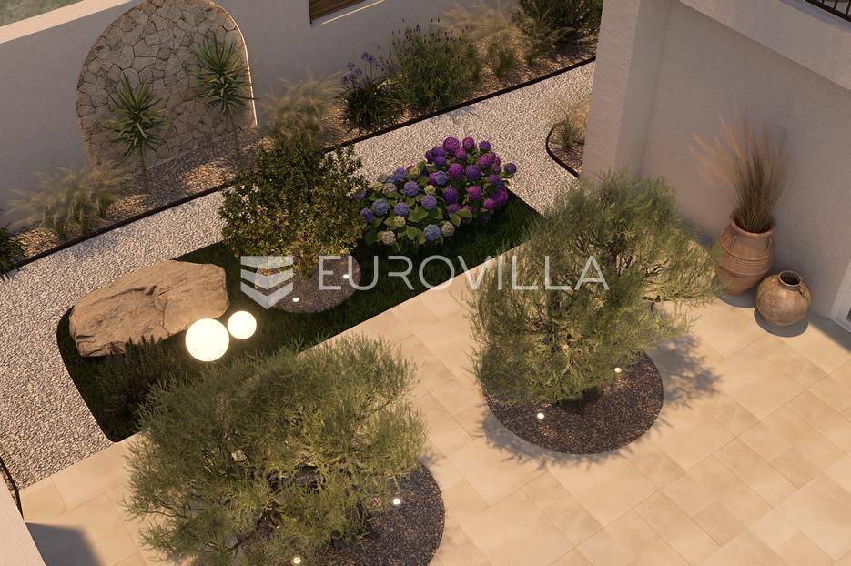 Crno, nedaleko od Zadra, u mirnom okruženju smjestila se dizajnerska vila na zemljištu površine 707 m2.Ova pomno dizajnirana vila prostire se na dvije etaže, brutto površina iznosi 230 m2.Na prvoj etaži nalazi se ulazni prostor, prostrana kuhinja, blagovaonica i dnevni boravak otvorenog koncepta, teretana, kupaonica, praonica, te natkrivena terasa.Unutarnjim stubištem dolazi se na drugu etažu gdje se nalaze tri spavaće sobe, dvije kupaonice, te nenatkrivene terase s koje se pruža panoramski pogled na Velebit.Svaki detalj osmišljen je s mnogo pažnje, s naglaskom na eleganciju i kvalitetu.Kombinacija kamena, drva i vrhunskih materijala stvara osjećaj topline i luksuza.U dvorištu kuće nalazi se bazen površine 38 m2 sa sunčalištem i prostranom terasom u idiličnom mediteranskom okruženju.U dvorištu se nalazi i pomoćni objekt u kojem se nalazi ljetna kuhinja idealna za blagovanje i druženje, wc i spremište ( površine 36 m2).Ova nekretnina idealna je za život, ali i kao investicija u turističke svrhe.Svi sadržaji potrebni za svakodnevni život nalaze se u blizini, a odlična je i prometna povezanost sa Zadrom.U izgradnji korišteni vrhunski materijali i oprema.Planirano useljenje 05/2026. godine.Za više informacija stojimo Vam na raspolaganju.