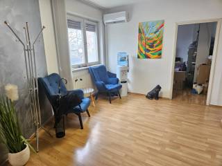 Iznajmljuje se svijetao ured 120m2 sa 5 prostorija i ulaznim halom (čekaonica/recepcija), 2 odvojena WC-a. lođom i čajnom kuhinjom.