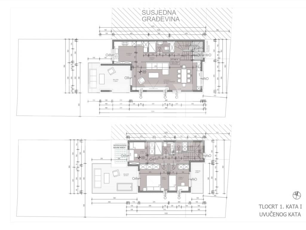 Prodaje se dvoetažni stan, u novoj zgradi sa 4 stana, koji se nalazi na drugom i trećem katu.